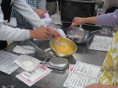 今回講師にお呼びしたのは、井波のコミュニティープラザ「アスモ」の名店『ビストロ ボン・グー』の林シェフ(o^^o)シフォンケーキとロールケーキを作るお手伝いをしていただきました。