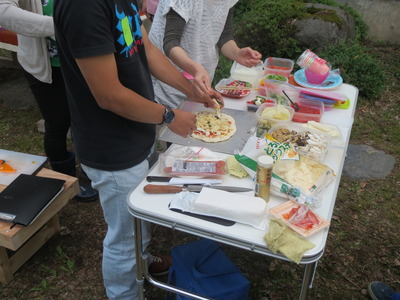 みんなで協力して仕込んできていただいた生地を伸ばし、材料をトッピング♪共同作業後のおいしいピザのおかげもあり、すごく雰囲気が盛り上がりました。