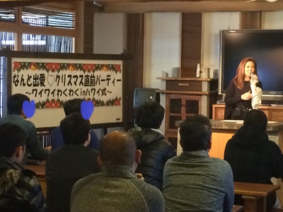 12月20日(日)、『なんと出愛♡クリスマス直前パーティー~ワイワイわくわくinハワイ式~』を開催し、婚活倶楽部なんとの会員28名(男性18名、女性10名)と、おせっ会さん6名の総勢34名の方に参加していただきました(o^^o)