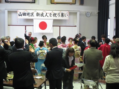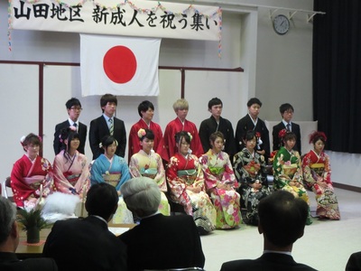 今年は18名の新成人が山田地区にいらっしゃり、一人ひとり新成人としての抱負や、地域や家族への想いを発表されました。