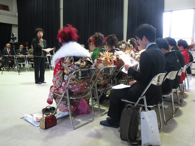 そのあとはなんとおせっ会、西井秀子さんによるプチ講演会(^ω^)「健やかな妊娠・出産のために」ということでライフプランを立てることの大切さや、実際に行っておられる婚活支援の現状などをお話していただきました。新成人の方々が結婚を考えられたとき「そういえばあのとき西井さんがおっしゃっておられたことって」などと、より真剣に考えるキッカケになっていただければ嬉しいですね♡