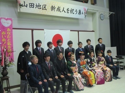 「山田地区 新成人を祝う集い」は今年で5回目。山田地区のおせっ会さんが、「色々な経験をして、将来は生まれ育った山田地区に戻ってきてね」という想いも込めて、自主的に開催しておられます。