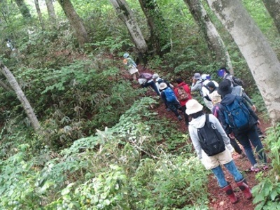 高落場山の見所といえばブナ原生林♪平地域と城端地域の境目がトレッキングコースになっており、平地域と城端地域に生えているブナの違いなどをナチュラリストの方に解説していただきました。