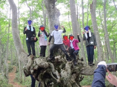 高落場山の見所といえばブナ原生林♪平地域と城端地域の境目がトレッキングコースになっており、平地域と城端地域に生えているブナの違いなどをナチュラリストの方に解説していただきました。