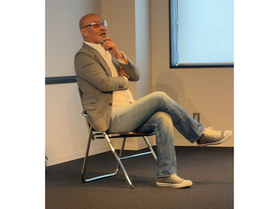 講師は、なんと婚活大使であり、音楽プロデューサーでもあり、ご自身もミュージシャンとして活動する野澤孝智氏。これまでの豊富な経験をもとに、芸能の歴史や、音楽プロデューサーとして出会ってきた人々の逸話、さらに歌詞が生まれた背景にあった出来事など、ここでしか聞けない貴重なお話が語られました。